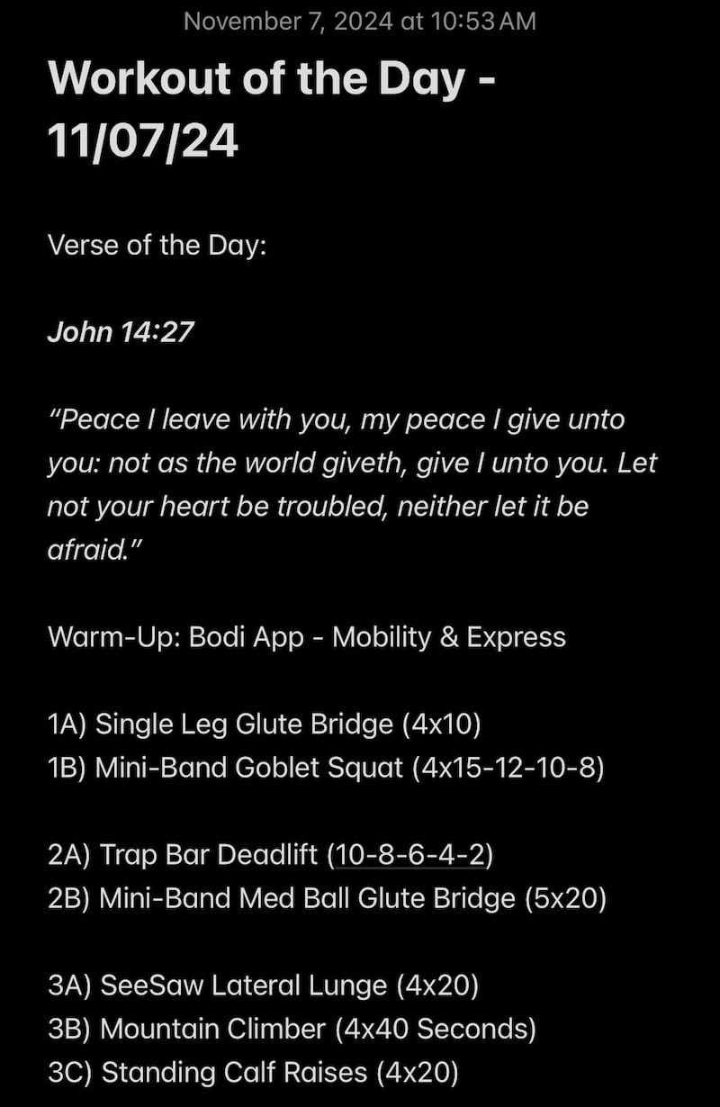 Inspired by John 14:27, this workout also brings an element of mindfulness, reminding us to cultivate peace within as we build strength.